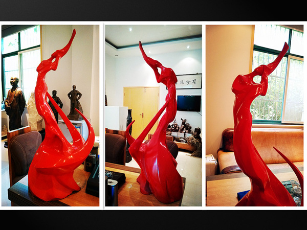 雕塑形體的結(jié)構(gòu)組織與變幻的姿態(tài)相暗合,引以倆飛動弦歌姿態(tài)柔美的仙女為主體(毛澤東詞云‘神女應(yīng)無恙,當驚世界殊’與此處仙女弦歌有著同樣的情動。多表現(xiàn)了飛速發(fā)展的時代,生活發(fā)生的巨變。),一女撫琴動操,一女欲彈琵琶,她們之間在形式與節(jié)奏上,有著諧和的律動,身體線紋的處理,以及周遭物質(zhì)隨形,一切美表現(xiàn)在姿態(tài)里,也在一切都趨向于美的狀態(tài)。派脫(W·pater)言“一切的藝術(shù)都是趨向于音樂的狀態(tài)”一語道出藝術(shù)的表現(xiàn)出的動的形式。而雕塑的美在于外在的藝術(shù)表現(xiàn)形式以及藝術(shù)探入靈魂深處的顫動,雕塑外在形體是抽象的,一種在美的范疇的扭曲變形,呈流轉(zhuǎn)的飛動的姿態(tài),不僅承歡視覺的審美要求,而將更多的筆墨投注于形神在節(jié)奏韻律上的諧和,是張彥遠在《歷代名畫記》中所說的“古之畫或遺棄形似而尚其骨氣。”骨氣的流露來源于其外在的藝術(shù)手法。雕塑輾轉(zhuǎn)間如流動的水波,盤旋環(huán)繞,在靜默的空間中,與藝術(shù)家的情感交融。